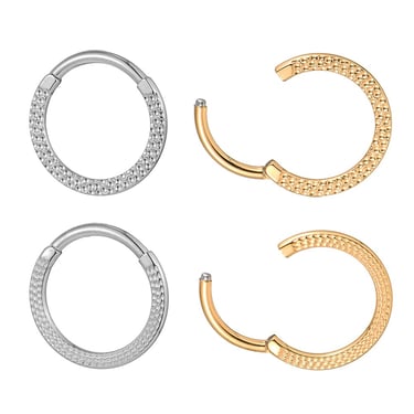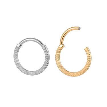 Explora nuestra colección de más de 300 modelos, con diseños únicos y materiales de alta calidad pensados para realzar tu personalidad. Todas nuestras joyerías están hechas de titanio grado implante, un material hipoalergénico, seguro y duradero, ideal incluso para pieles sensibles.